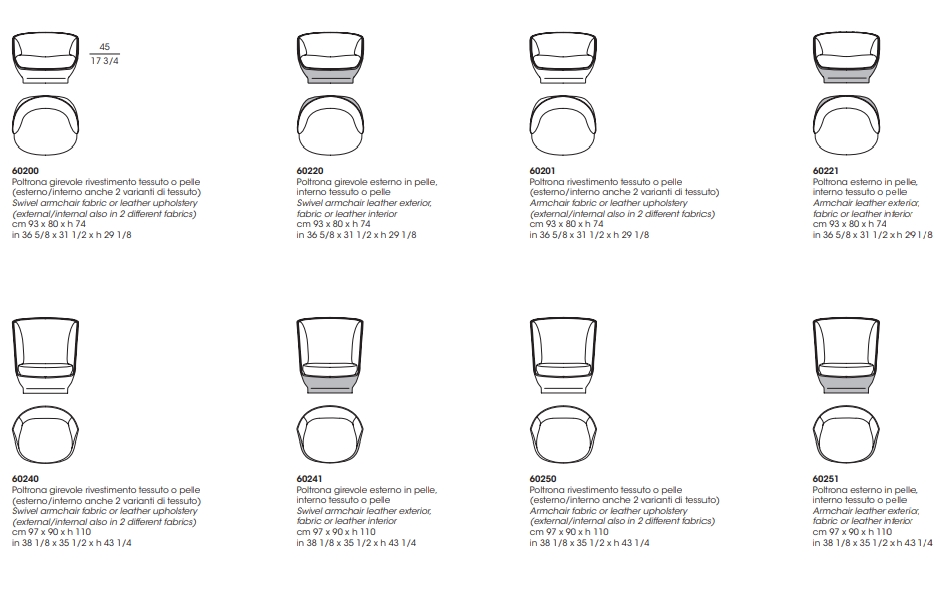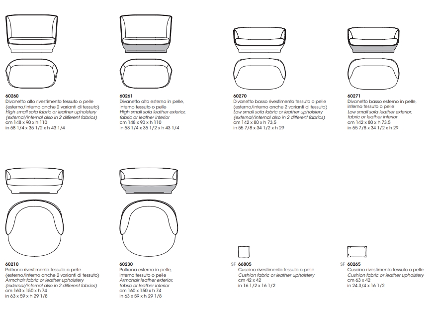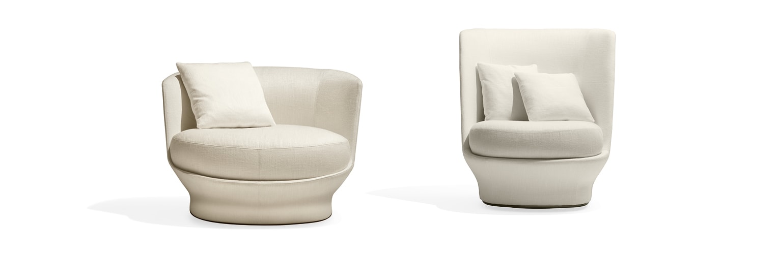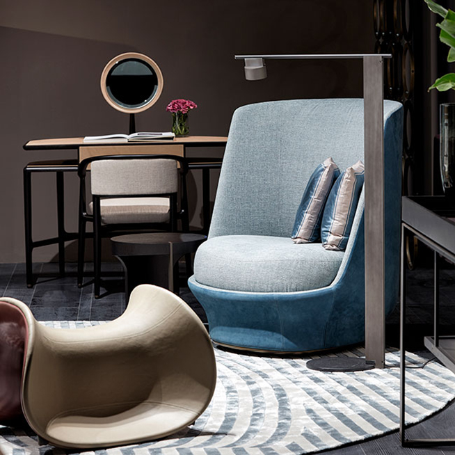 扶手椅和带有单体结构的小沙发,以定义空间内空间的新诠释。固定和旋转扶手椅,或小沙发,在几个面料或皮革饰面,提供低或高背部,以满足共享放松的需要。