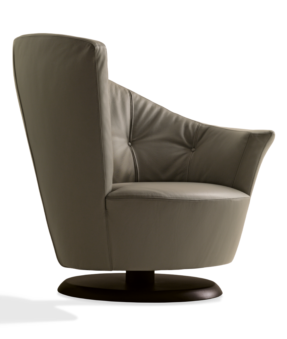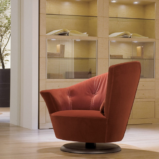 大旋转扶手椅,建议一个创新的方式包围身体在一个惊人的位置范围。一个出和出不对称的雕塑,非凡的舒适。