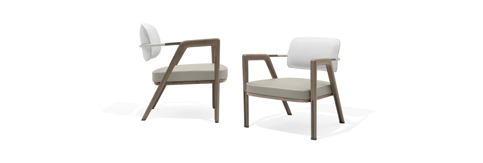 向艾尔莎·佩雷蒂致敬,这把扶手椅是敌对势力数量和空位交替的结果。核桃结构成为设计的显著特征。金属管状框架使座椅像拥抱一样,支撑着靠背。
