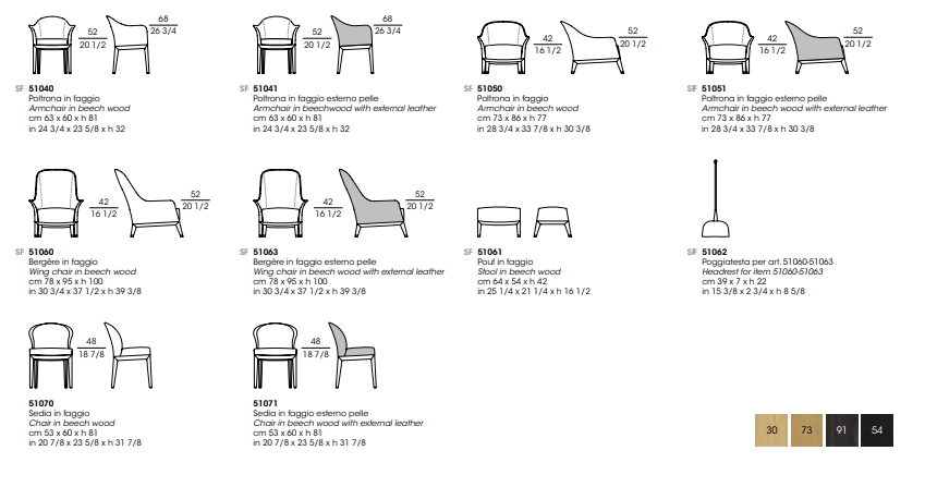 它的形状变得美丽,因为它变得更加有用:椅子的关键因素是舒适和力量。一系列扶手椅在实心山毛虫木材,面料或皮革内饰,在一个或两种颜色。
