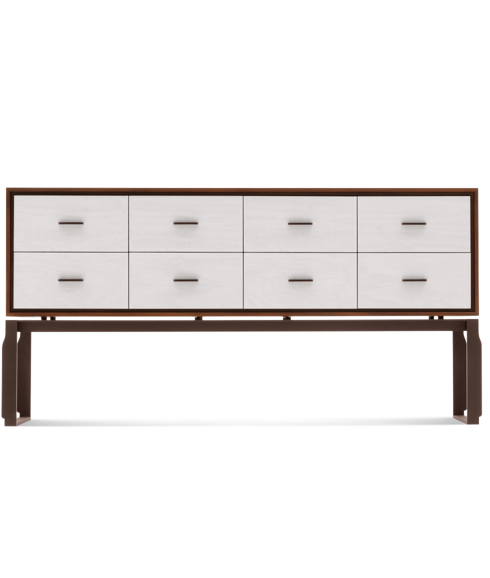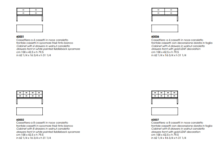 一个集合,表达独特性和和谐,总是和无处不在。一个 4 或 8 抽屉柜在核桃卡纳莱托木材与前面可用白色油漆菲德尔贝克西卡莫尔或金叶装饰。
