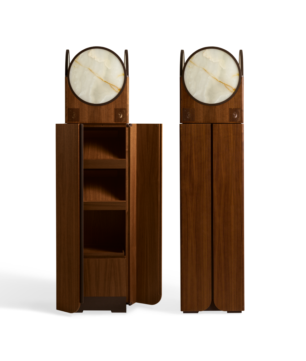 一件诞生于最先进的技术和精湛工艺的和谐融合。高柜与光和高保真在核桃卡纳莱托木材。