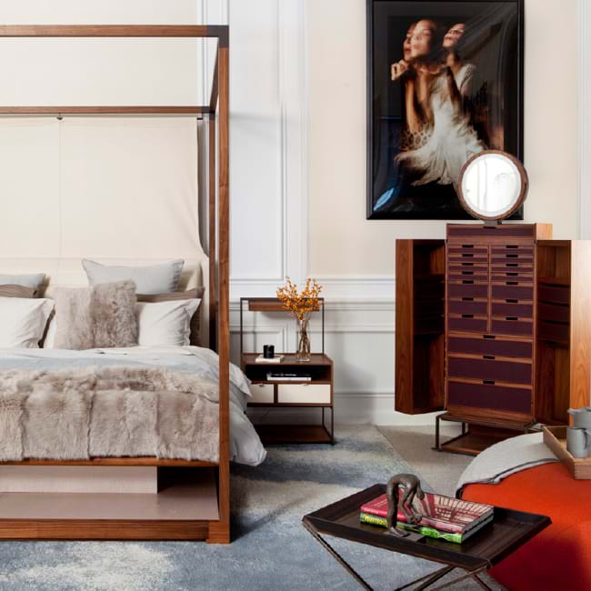 一个物体,可以提供舒适的空间,在那里你可以摆脱这一切,逃进一本好书。床边柜在核桃卡纳莱托木材和Led灯。