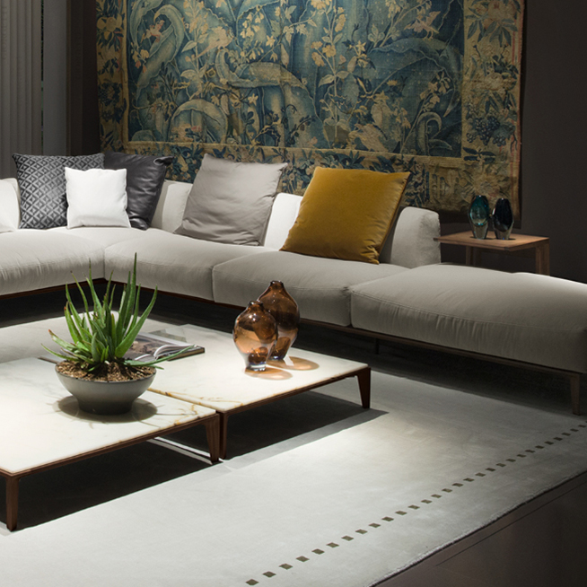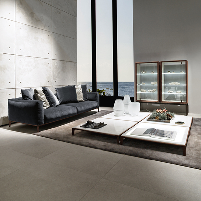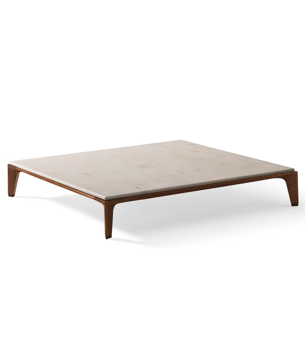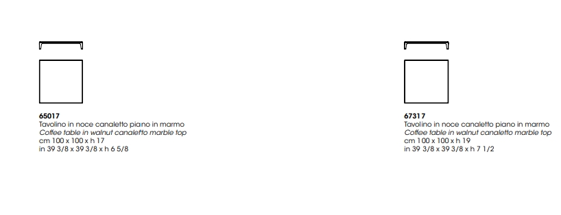 核桃卡纳莱托木材与大理石混合,创造阿顿低表。方形低桌,结构为实心核桃木和阿菲翁大理石顶部。