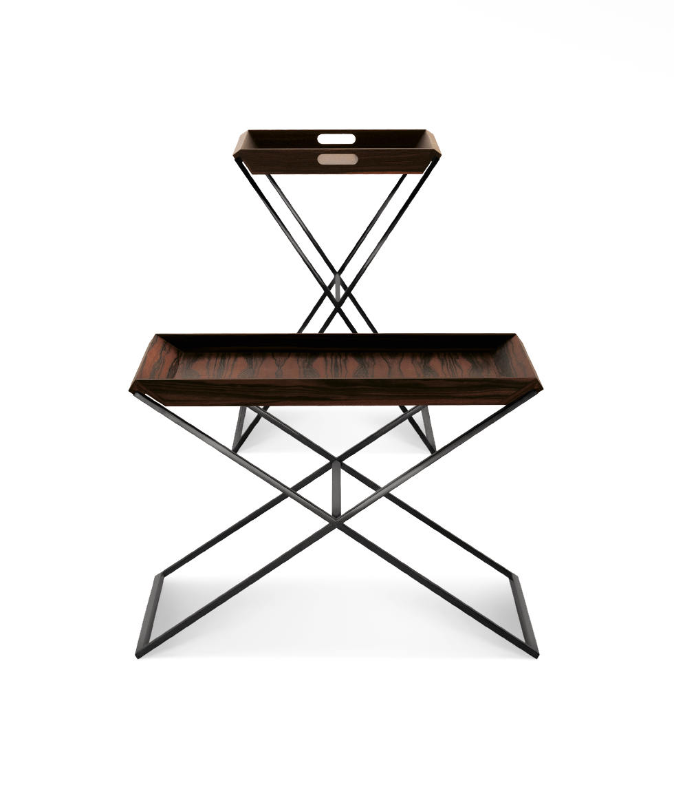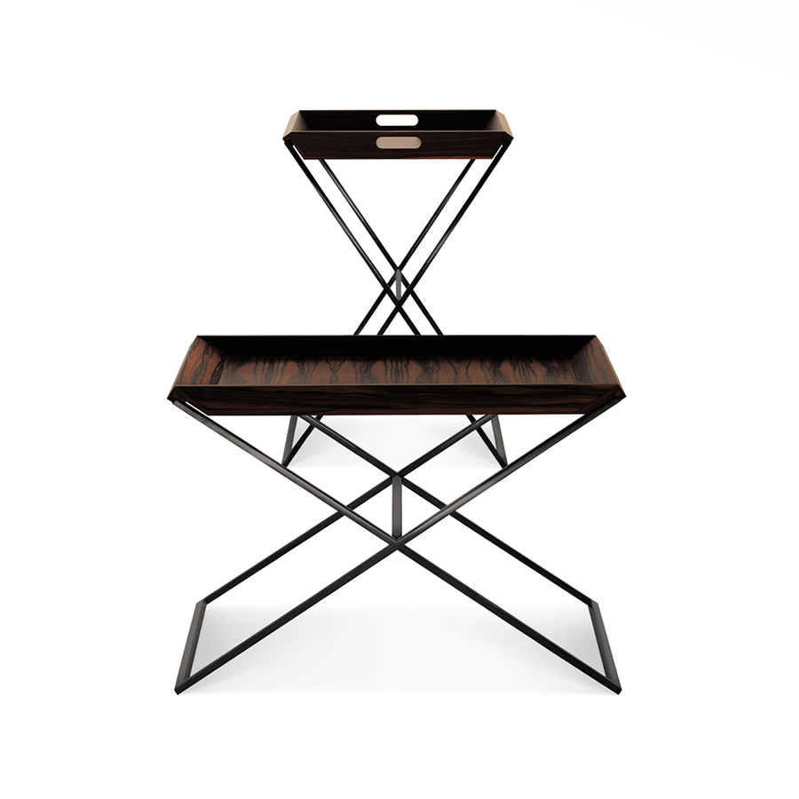 基本设计反映了一个坚定的字符,通过隐藏一个有用的性质,由于顶部成为一个托盘。低桌,底漆为金属,涂有无烟煤色,托盘为乌木马卡萨。
