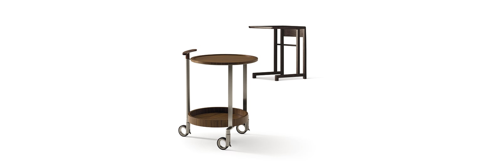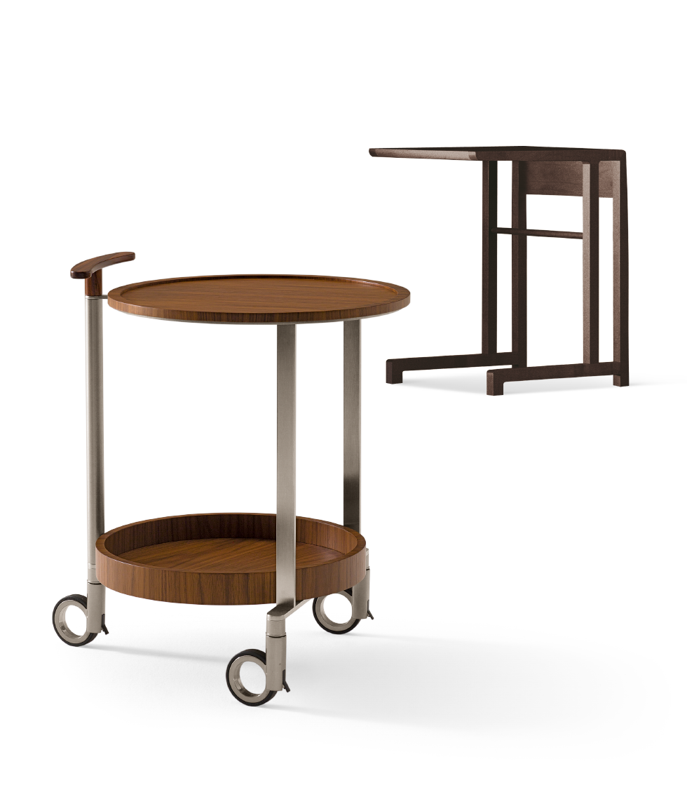 作为一个小托盘与快速的运动和谨慎的性格。枫树或核桃甘蔗木的小桌子。它可以是长方形的或圆形的车轮。