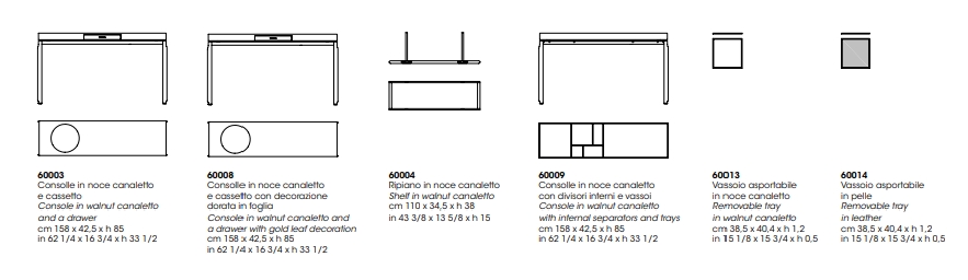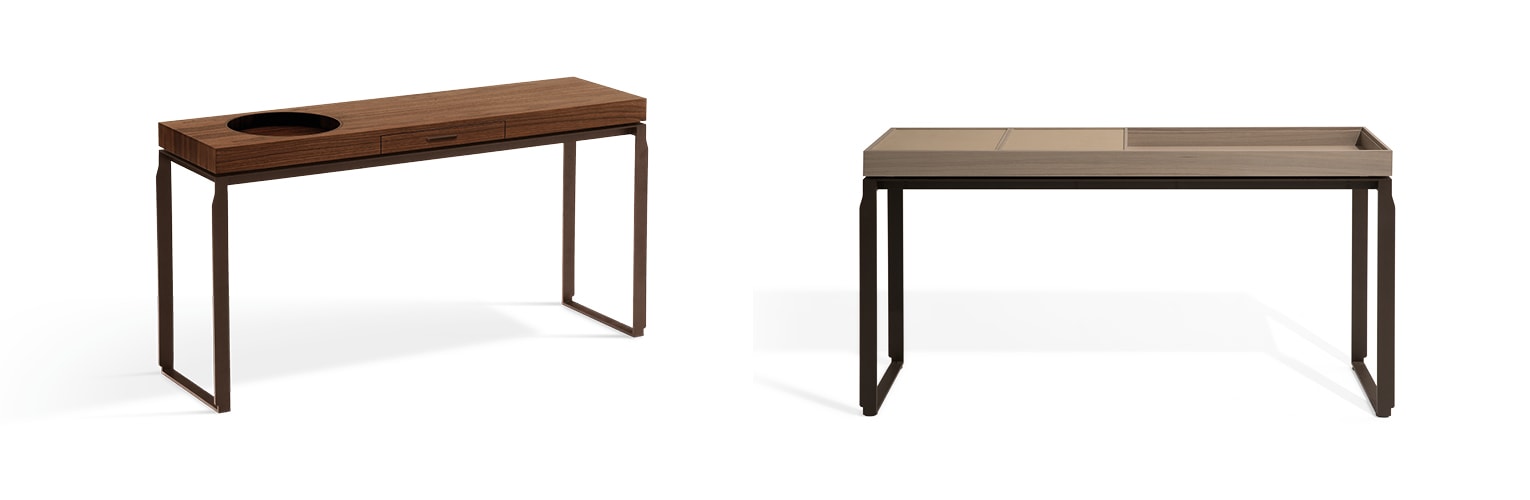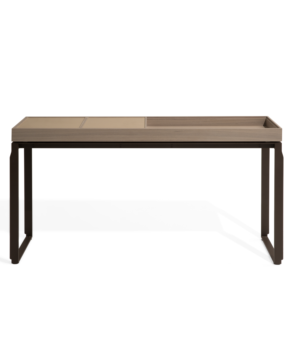 一个集合,表达独特性和和谐,总是和无处不在。核桃卡纳莱托木材和金属的控制台涂成青铜色。