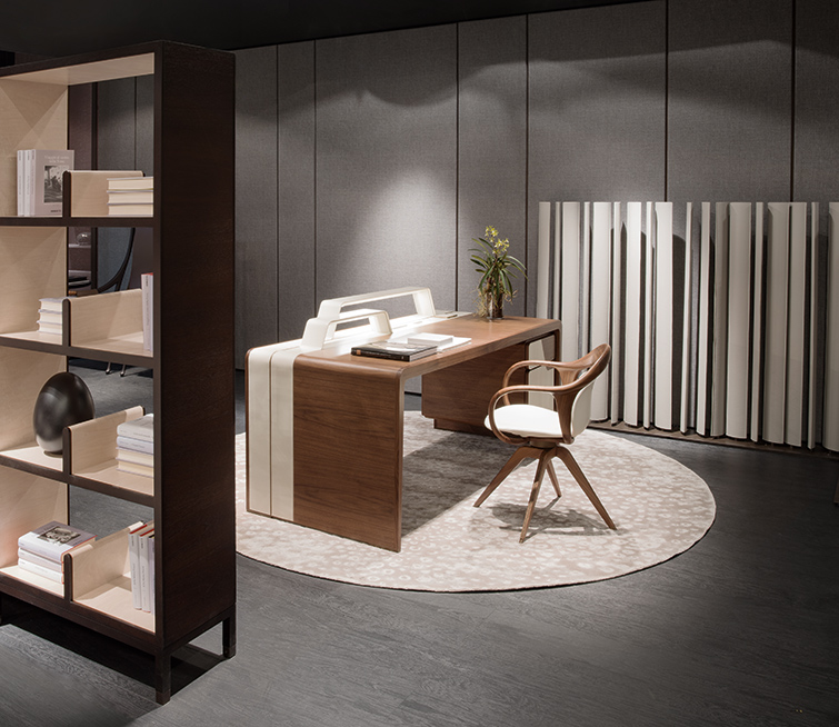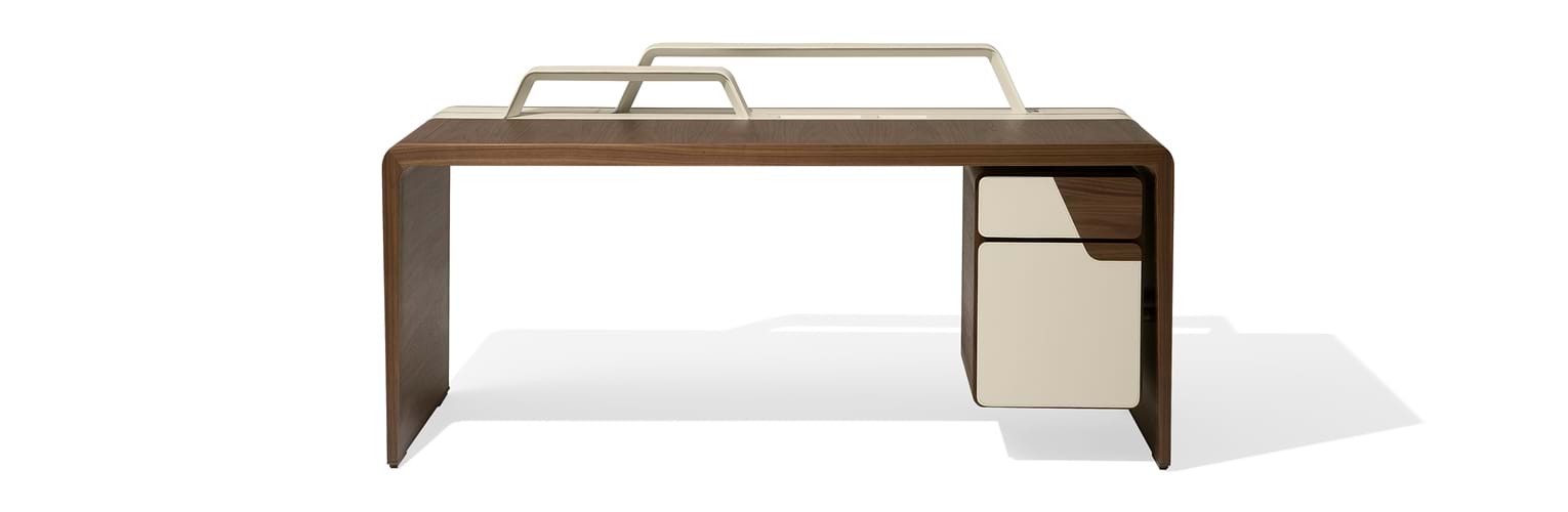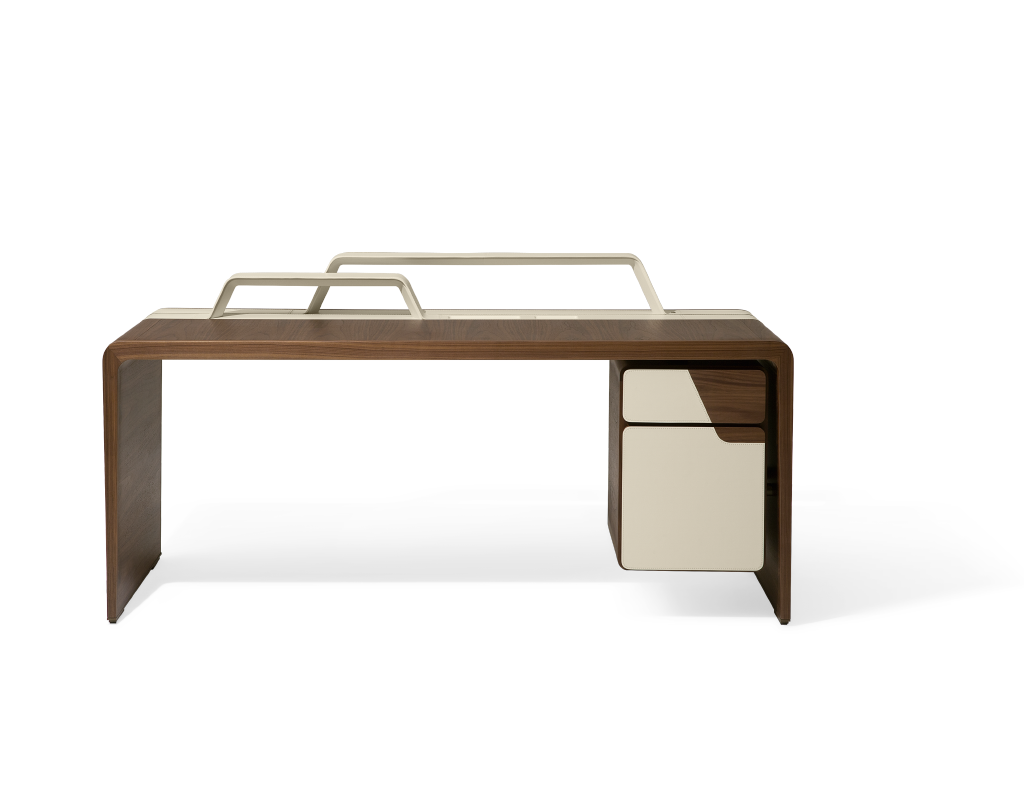 阿尔玛,来自拉丁阿尔穆斯语,意思是"灵魂","她谁滋养",庆祝一个办公桌的主要功能,这是打开心灵,扩大一个人的知识。写字台在核桃卡纳莱托木材和鞍皮革,顶部有三种不同的版本。