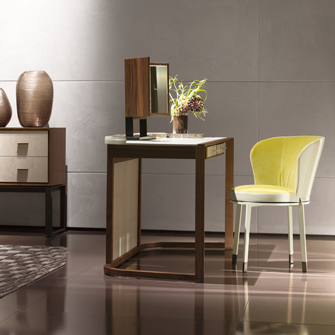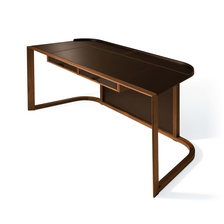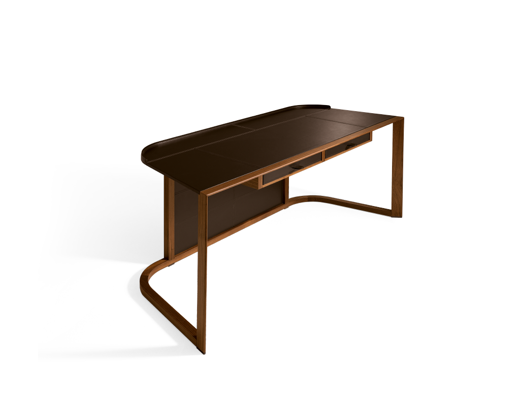 这个写字台在核桃卡纳莱托木材和鞍皮革竖琴回到轻盈和优雅的离子柱。写在实心核桃卡纳莱托木材和鞍皮革的办公桌。