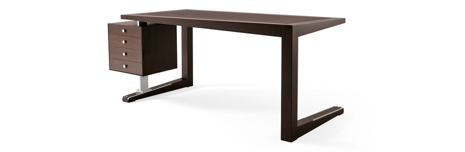 综合和简单:这些是一张只有四块组成的桌子的特点。写字台在实心山毛虫木材和顶部可用液体橡胶或抛光乌木。