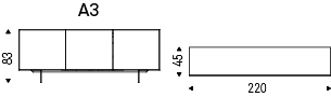 带白色 (OP7) 或石墨 (OP69) 漆木框架的餐具柜。卡纳莱托胡桃木 (NC) 或烤橡木 (RB) 门。黑色压纹喷漆钢脚 (GFM73)。内部透明玻璃搁板。可选:每个门的内部抽屉。