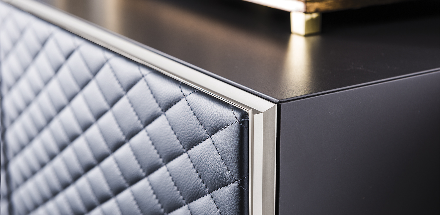 蒂芙尼设计的橱柜采用柔软皮革或合成皮革制成的绗缝内饰,使现代客厅变得温暖宜人。这款高大的现代橱柜采用最优质的材料制成,例如柔软的正面内饰。选择不同的覆盖物和珍贵的饰面,可以定制这个设计餐具柜,以适应您自己的设计生活区,赋予独特的风格。