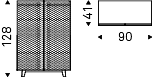 漆黑 (GF69)、白色 (GF71) 或黑色 (GF73) 压花木餐具柜。相同颜色的压花钢底座。根据带有压纹钛 (GFM11) 铝型材的样品卡,用合成皮革或软皮革覆盖和绗缝门。部分镜面内部和烟熏玻璃搁板。可选:内部 LED 灯套件。