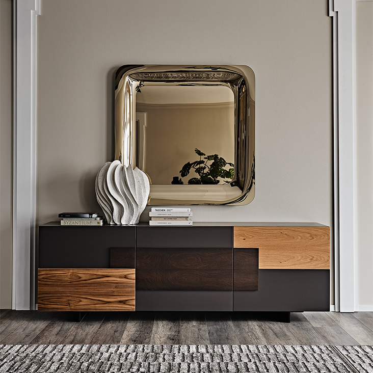 迷人的Torino 木质餐具柜为客厅增添了个性,令人难以忘怀。这种设计餐具柜的独特之处在于结合了各种木材和精美饰面,从而形成了精致而独特的组合。内部玻璃搁板可以存放最有价值和最精致的物品,也可以放在实用的可选抽屉内。这款现代客厅餐具柜有 2 或 3 个门和两个可用高度,由于其精细的制造,构成了现代而精致的设计作品。