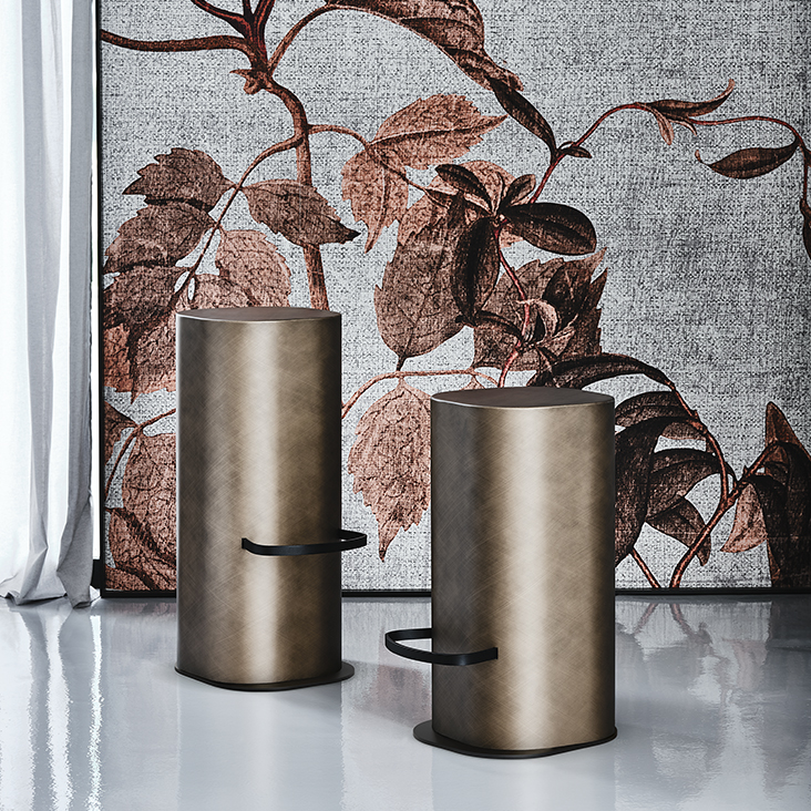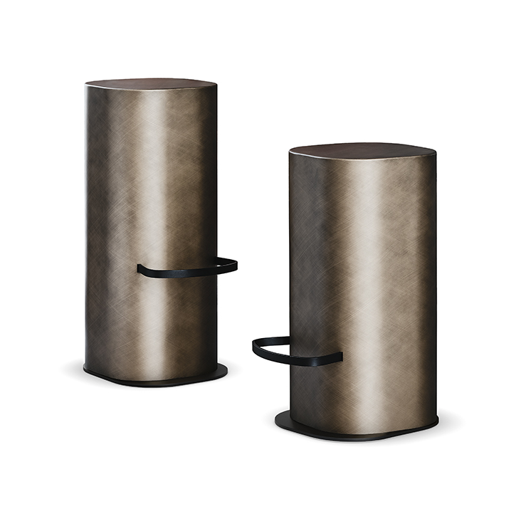 凳子采用拉丝青铜或拉丝灰色钢结构,脚凳采用黑色 (GFM73) 压纹漆钢。拉丝饰面可能会磨损。凳子重27公斤。
