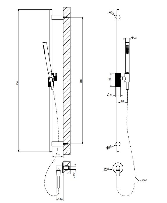 带防石灰石手淋浴的滑动导轨,1,50 米柔性软管和水出口。