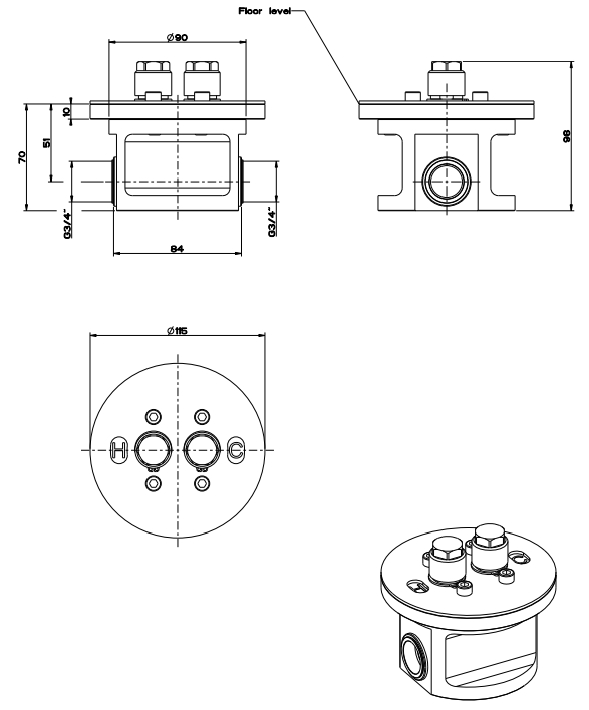 内置部分独立外部沐浴搅拌机,恒温,高流量。