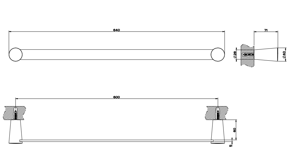 60 厘米中心距离毛巾轨。
