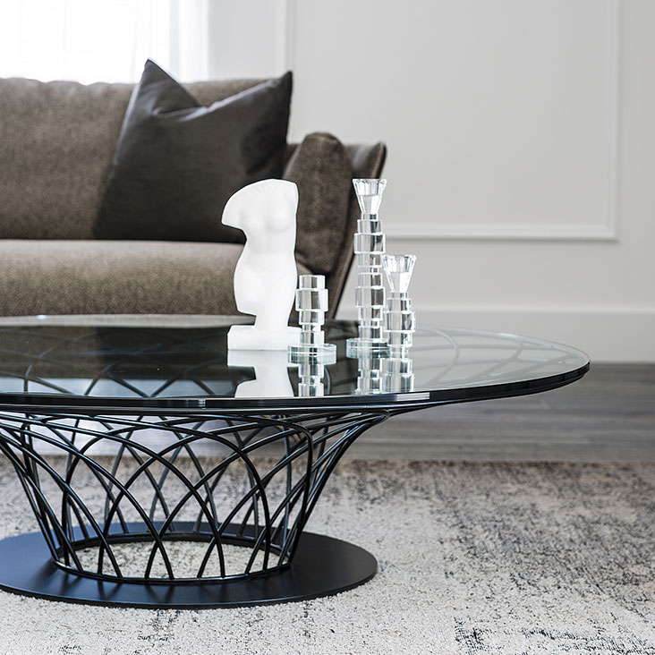 咖啡桌采用石墨 (GFM69)、白色 (GFM71) 或黑色 (GFM73) 压花钢底座。A 和 B 版本的顶部采用石墨 (GFM69)、白色 (GFM71) 或黑色 (GFM73) 压花钢。C 和 D 版本的顶部采用透明玻璃。玻璃台面铺设在底座上。