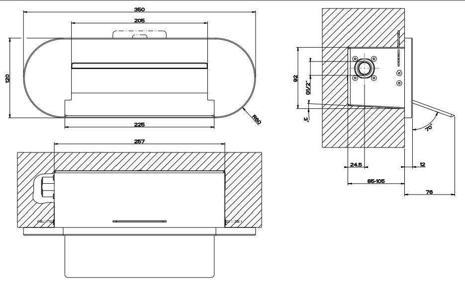 用于墙面固定 OVALE 瀑布淋浴喷口的外部部件将单独控制(不包括)。