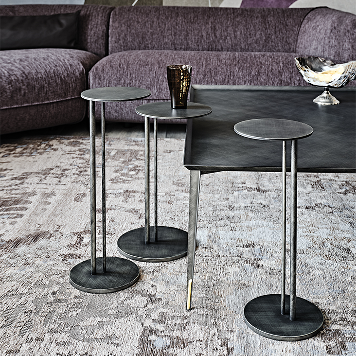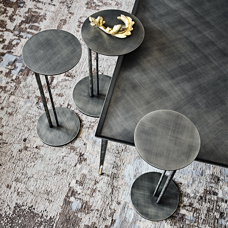 拉丝青铜或拉丝灰色钢咖啡桌。