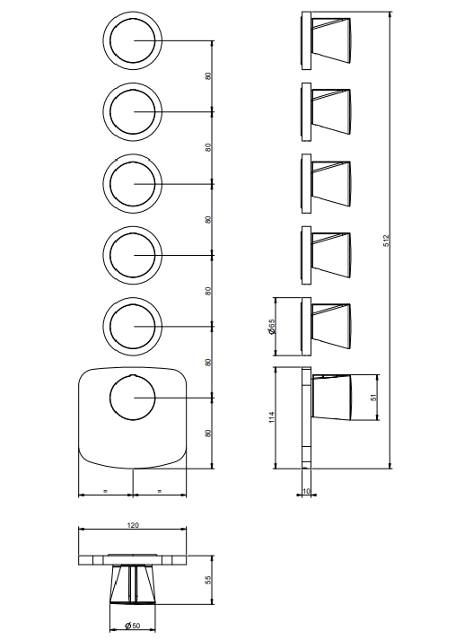壁挂式恒温式大容量搅拌机的外部部件。垂直/水平设置,具有五个独立出口。
