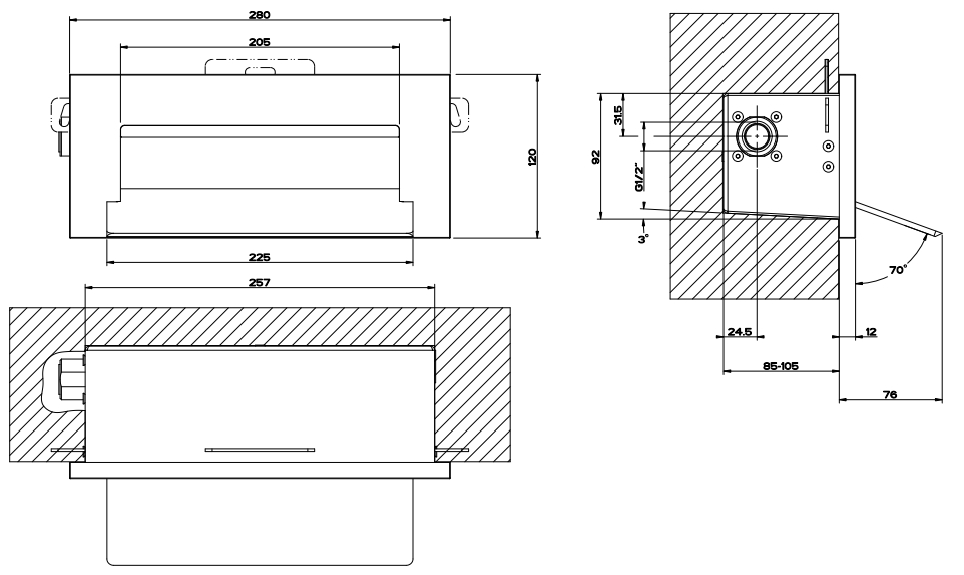 ‎瀑布淋浴喷口的外部部分将单独控制完成(不包括)‎