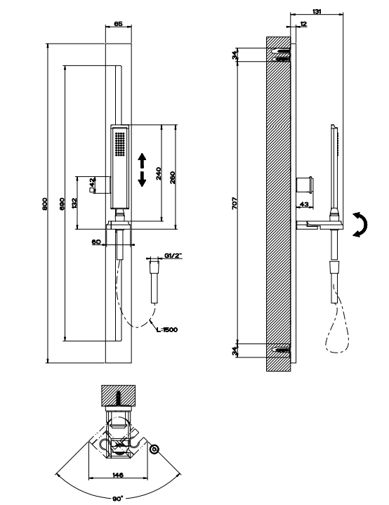 带防石灰石手淋浴的滑动导轨,1,50 米柔性软管