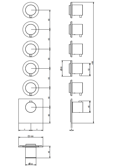 ‎壁挂式恒温式大容量搅拌机的外部部件。垂直/水平设置,具有五个独立出口‎