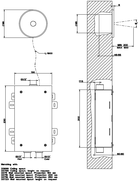 外置部件用于壁挂式电子独立控制(运行时间 15 秒),带温度和流量设置框