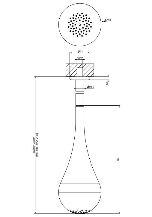 ‎天花板安装的防石灰石淋浴喷头,应要求长度‎