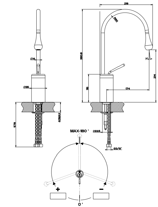 中型盆混合器,短喷口,柔性软管,无浪费。固定喷口。