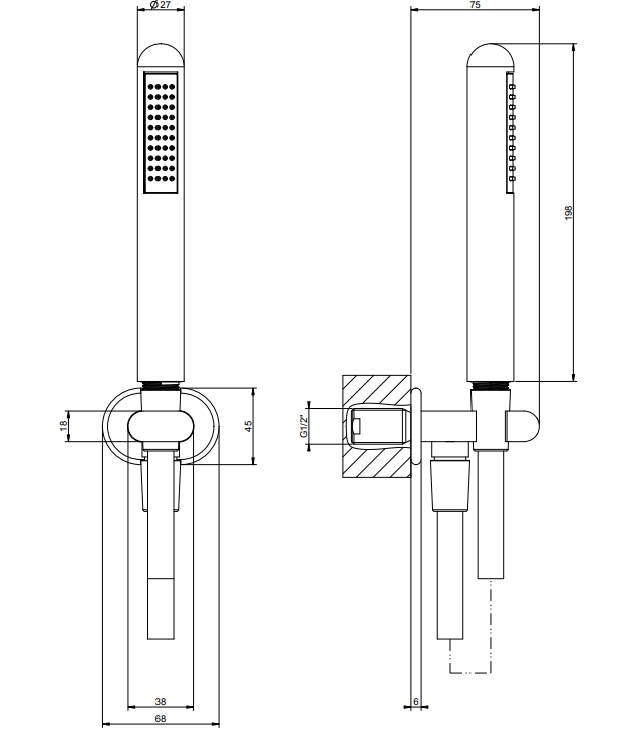淋浴设置与水出口,1,50米柔性软管和防石灰石手淋浴