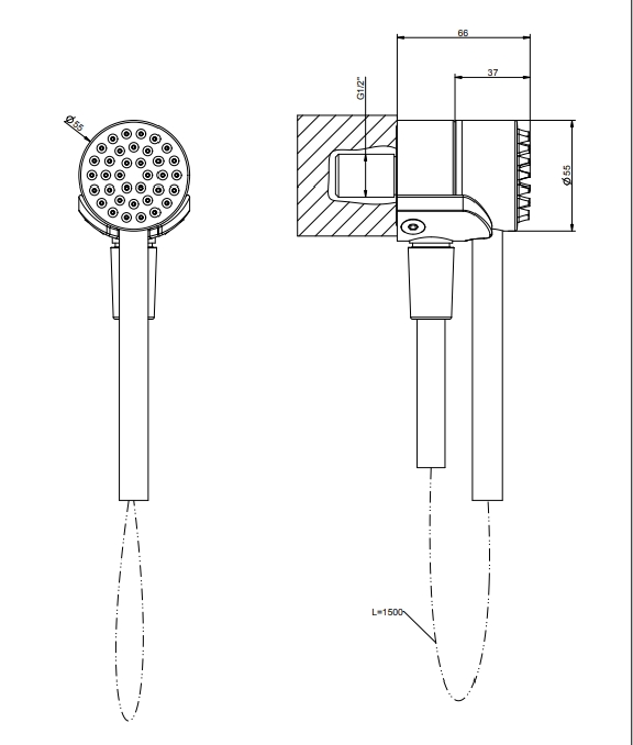 带出水口的磁淋浴、1,50 米柔性软管和防石灰石手淋浴机