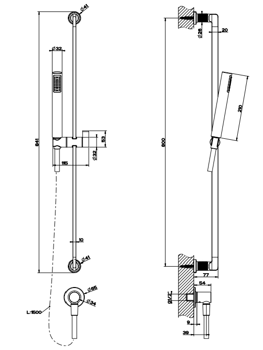 ‎带防石灰石手淋浴的滑动导轨,1,50 米柔性软管和水出口‎
