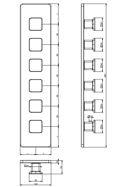 ‎壁挂式恒温式大容量搅拌机的外部部件。垂直/水平设置,具有五个独立出口‎