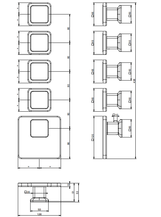 壁挂式恒温式大容量搅拌机的外部部件。垂直/水平设置,具有四个单独的退出