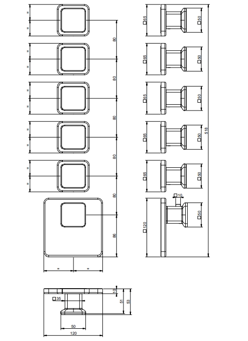 壁挂式恒温式大容量搅拌机的外部部件。垂直/水平设置,具有五个独立出口