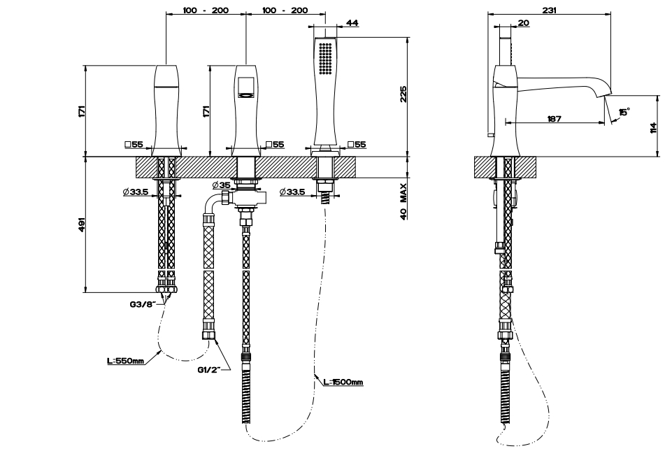 ‎三孔浴缸搅拌机与分流器在喷口,1,50米柔性软管和防石灰石手淋浴‎