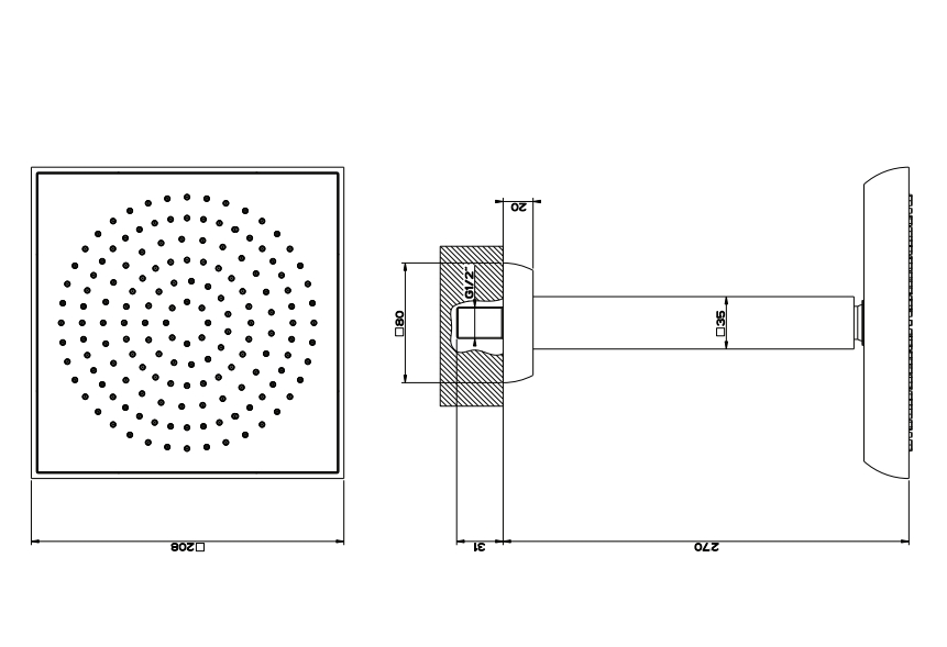 ‎天花板安装可调和防石灰石淋浴喷头‎