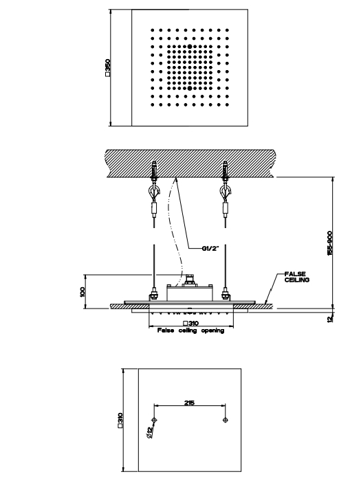 350x350 淋浴系统用于假天花板安装。具有降雨功能。要用盖子完成