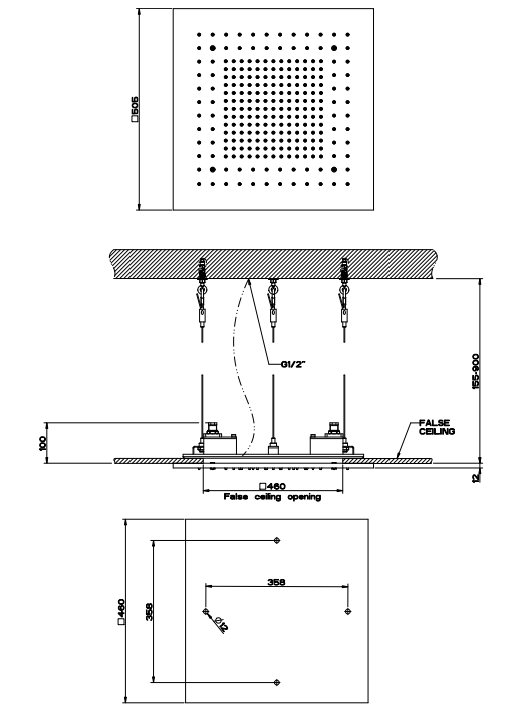 500X500 淋浴系统用于假天花板安装。具有降雨功能。要用盖子完成