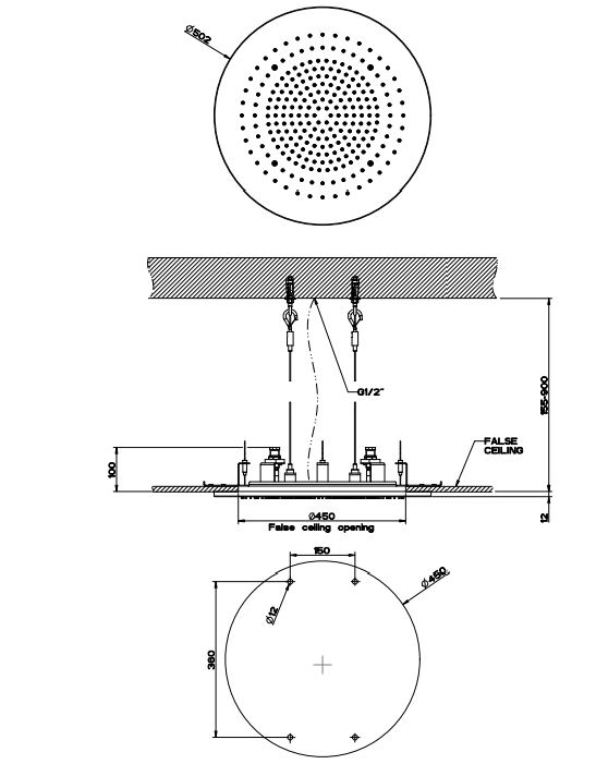 500 个用于假天花板安装的多功能系统。具有降雨功能。要用盖子完成