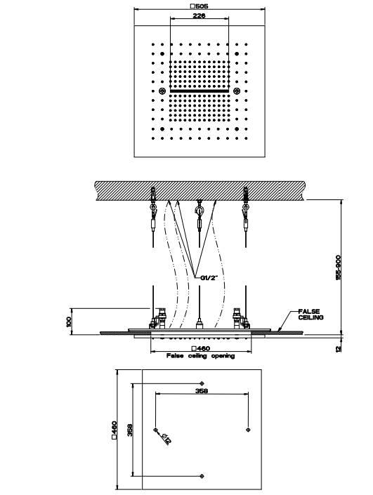 500X500 多功能系统用于假天花板安装。具有降雨/瀑布/雾功能。要用盖子完成