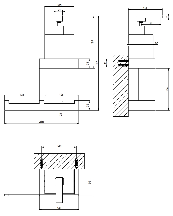 带白色肥皂分配器和毛巾架的壁挂式柱子