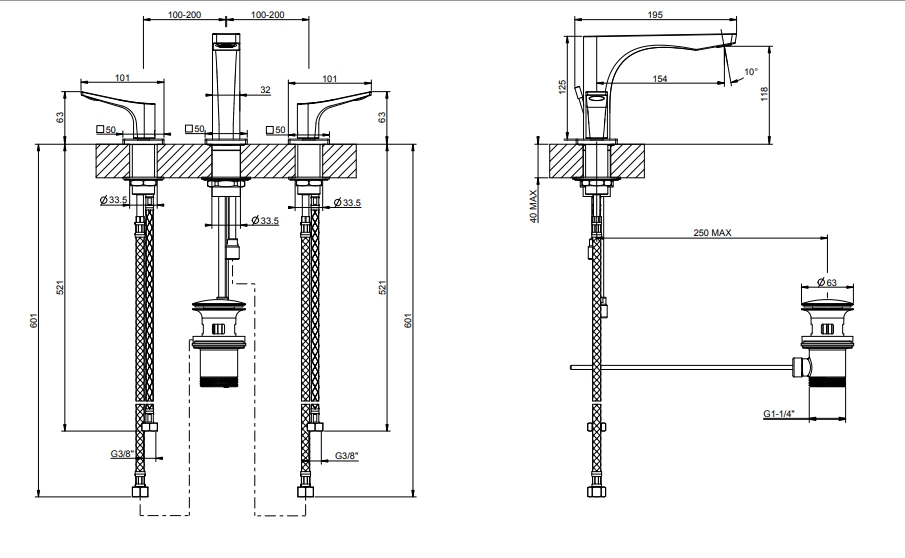 ‎三孔盆搅拌机,带弹性软管,带废物‎