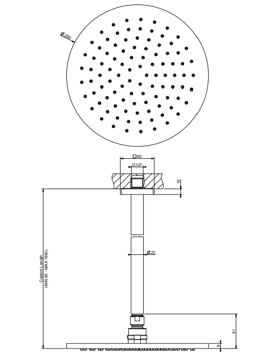 ‎天花板安装的防石灰石淋浴喷头,应要求长度‎