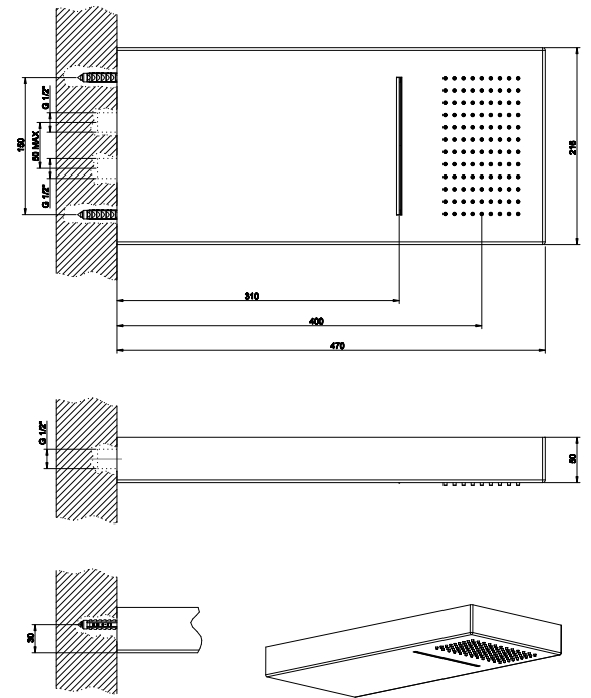 壁挂式多功能系统,具有雨量/瀑布功能。要完成双向单独控制(不包括 d)