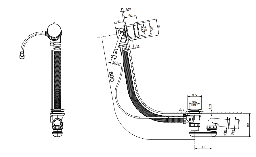 聚乙烯柱浴废物与溢出帽填充物。控制电缆长度 70 厘米