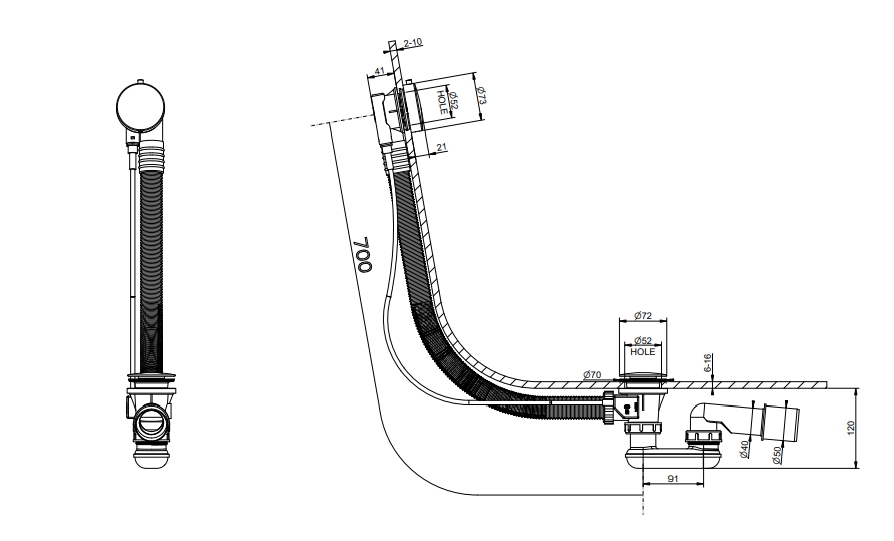 聚乙烯柱浴废物。控制电缆长度 67,5 厘米